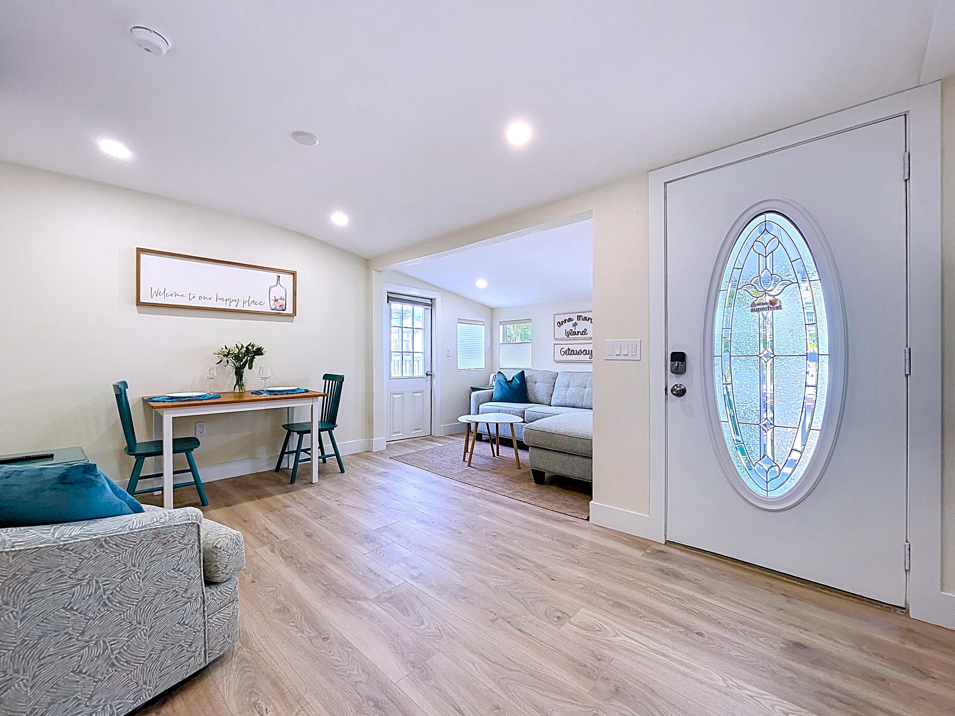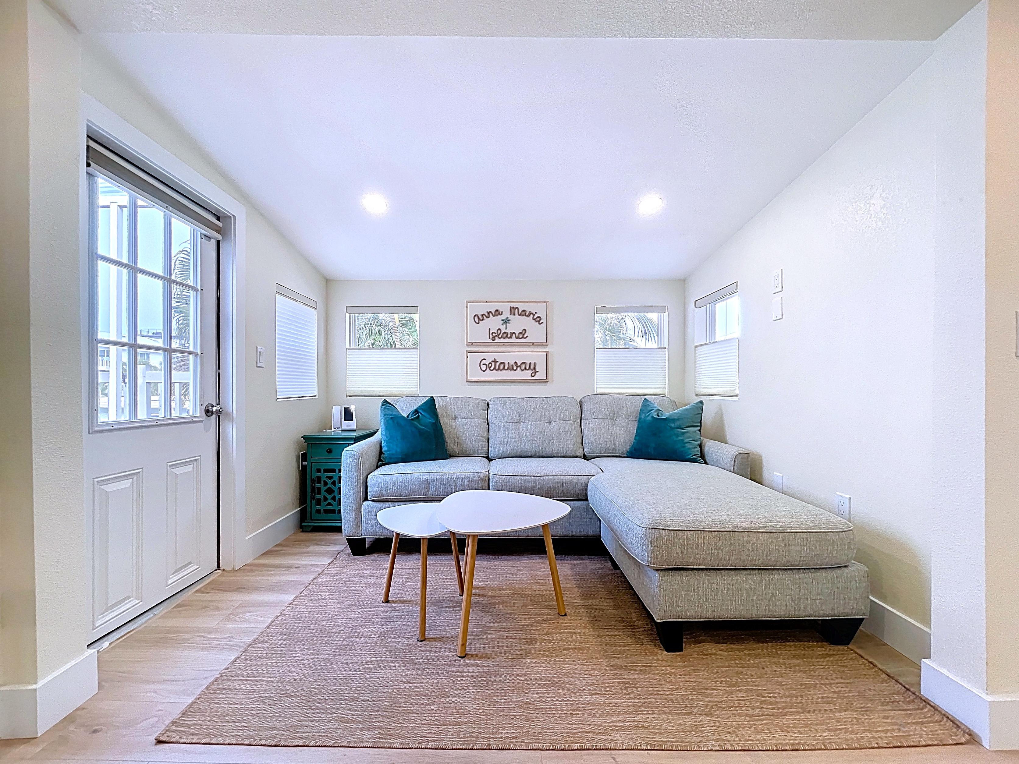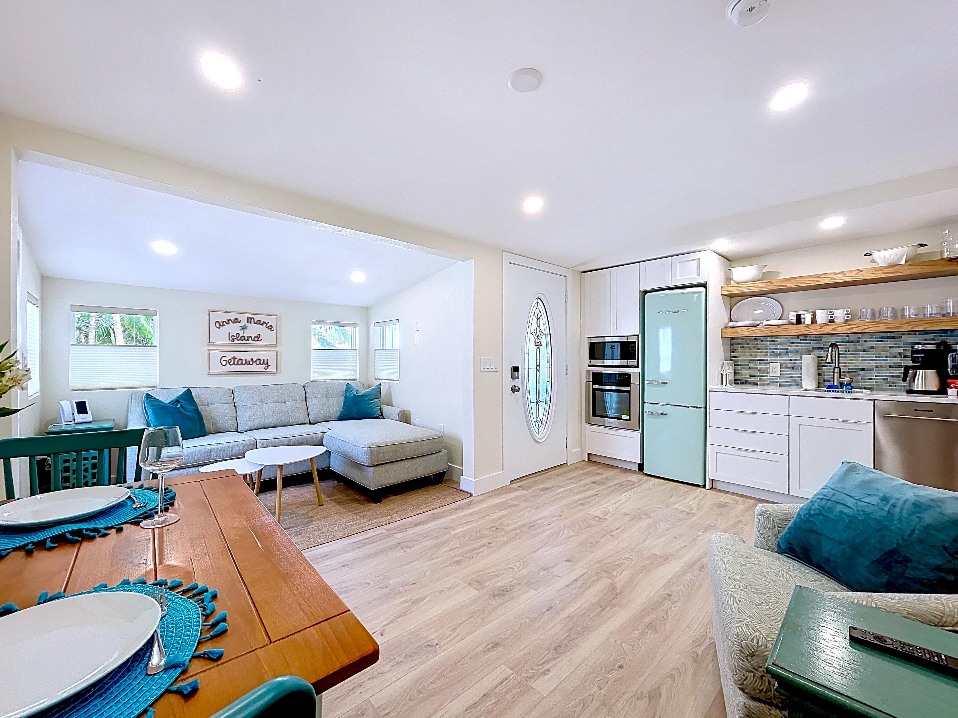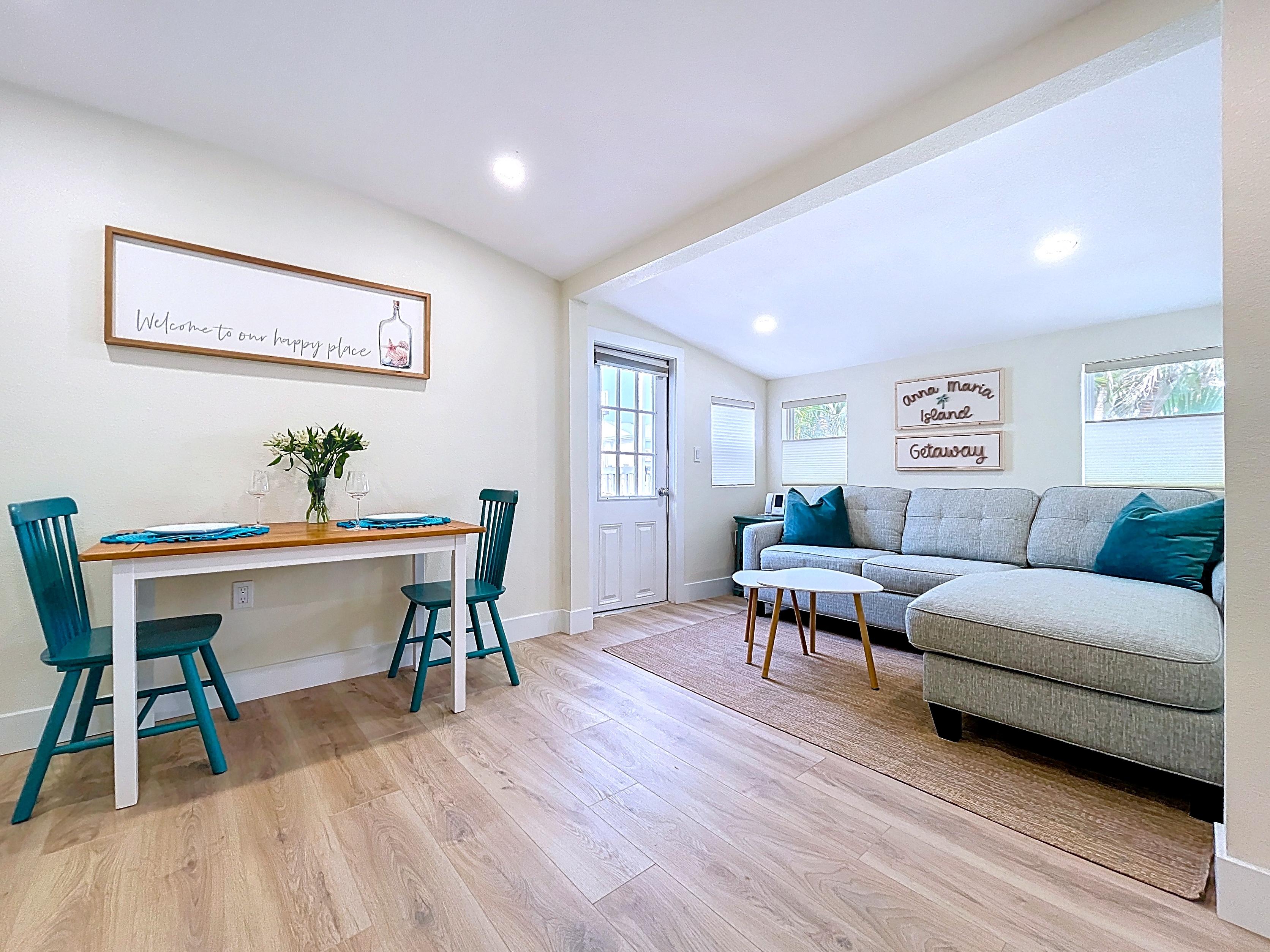 ✔ Bright open-concept living/dining area ideal for beach living and rental guests