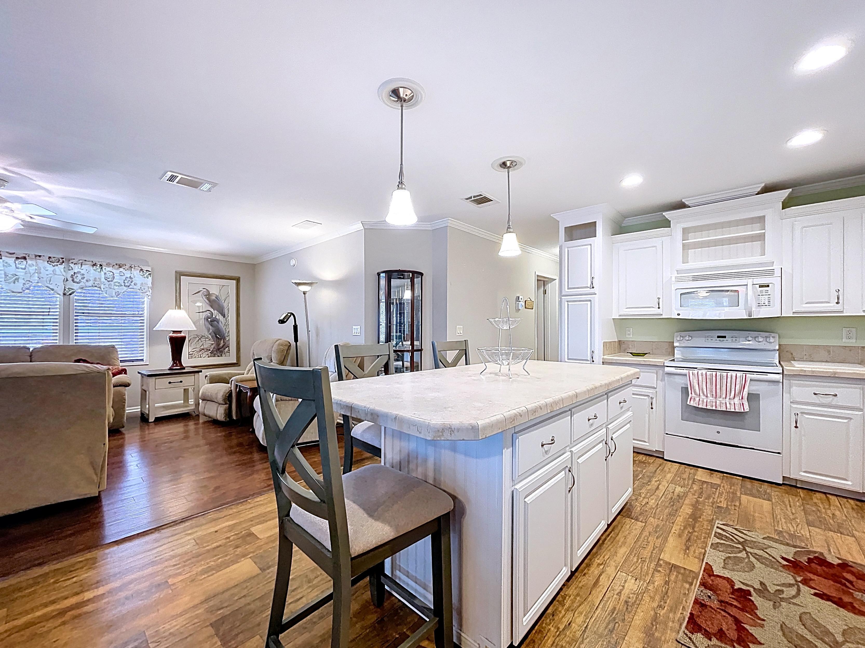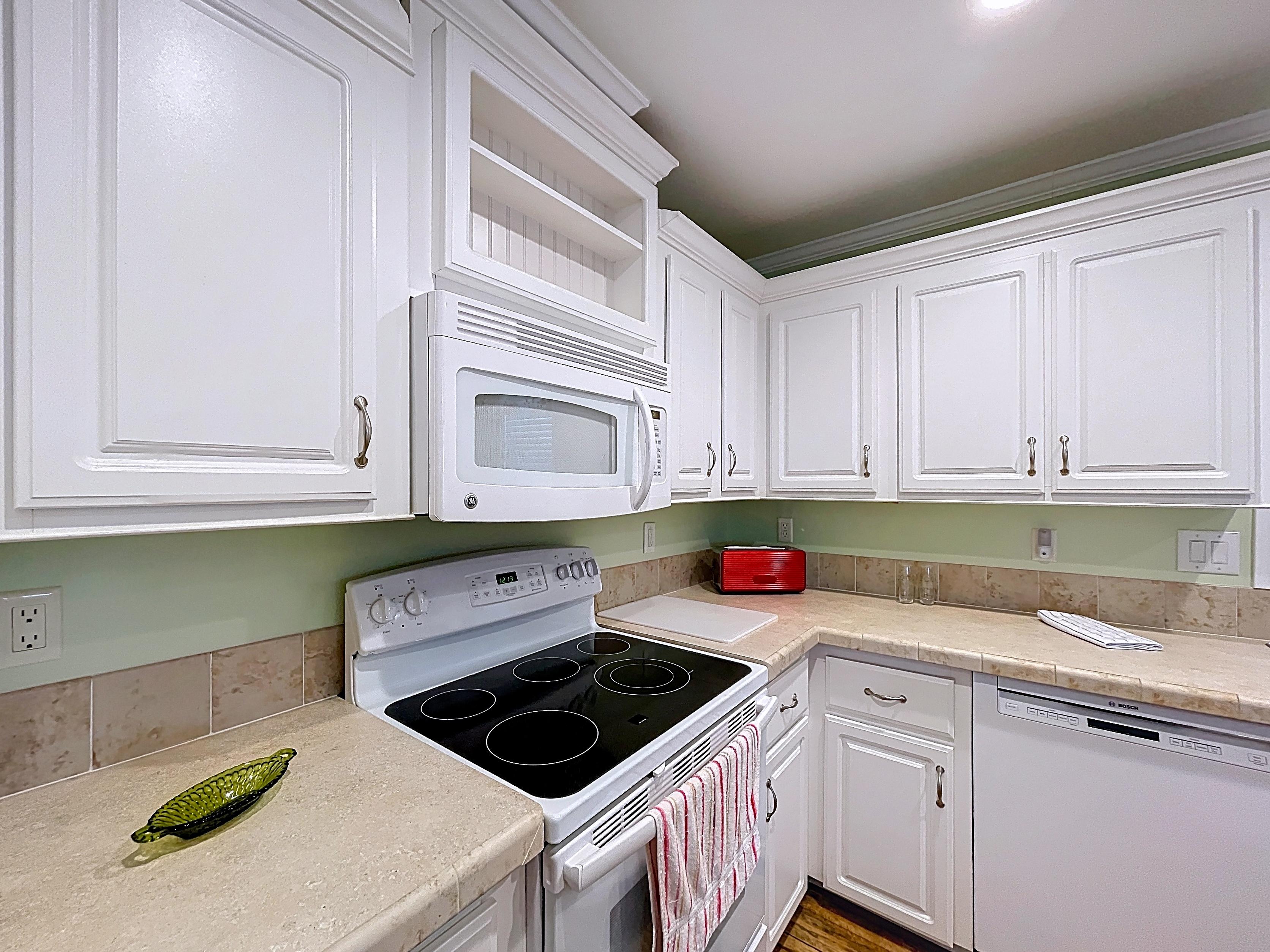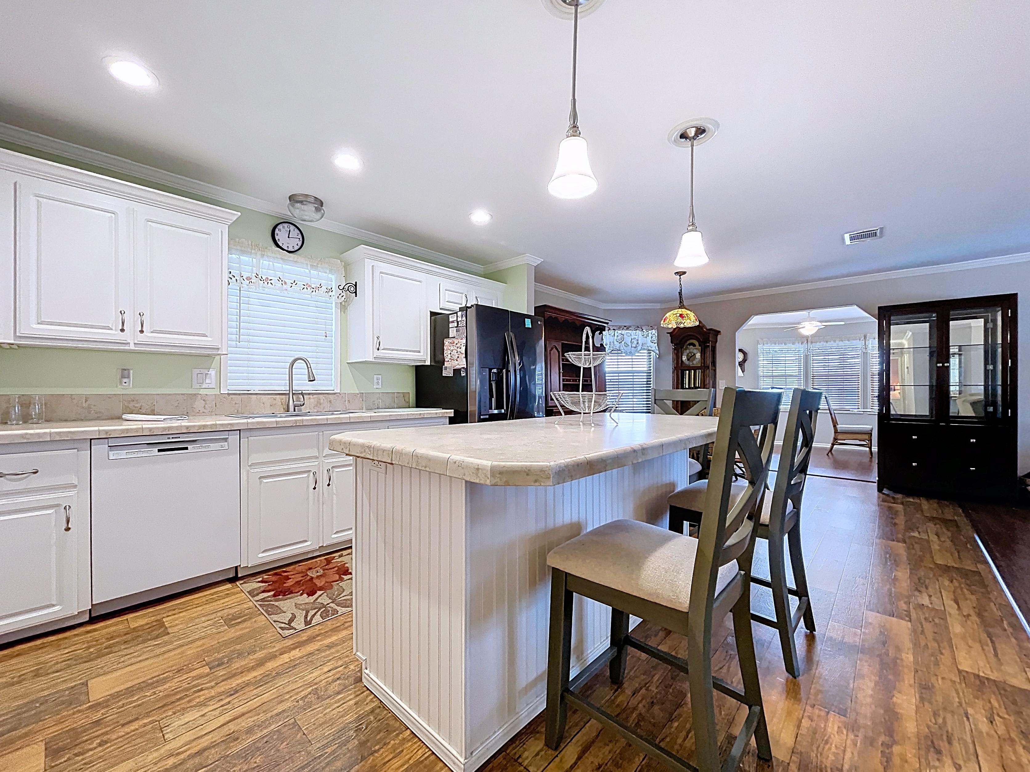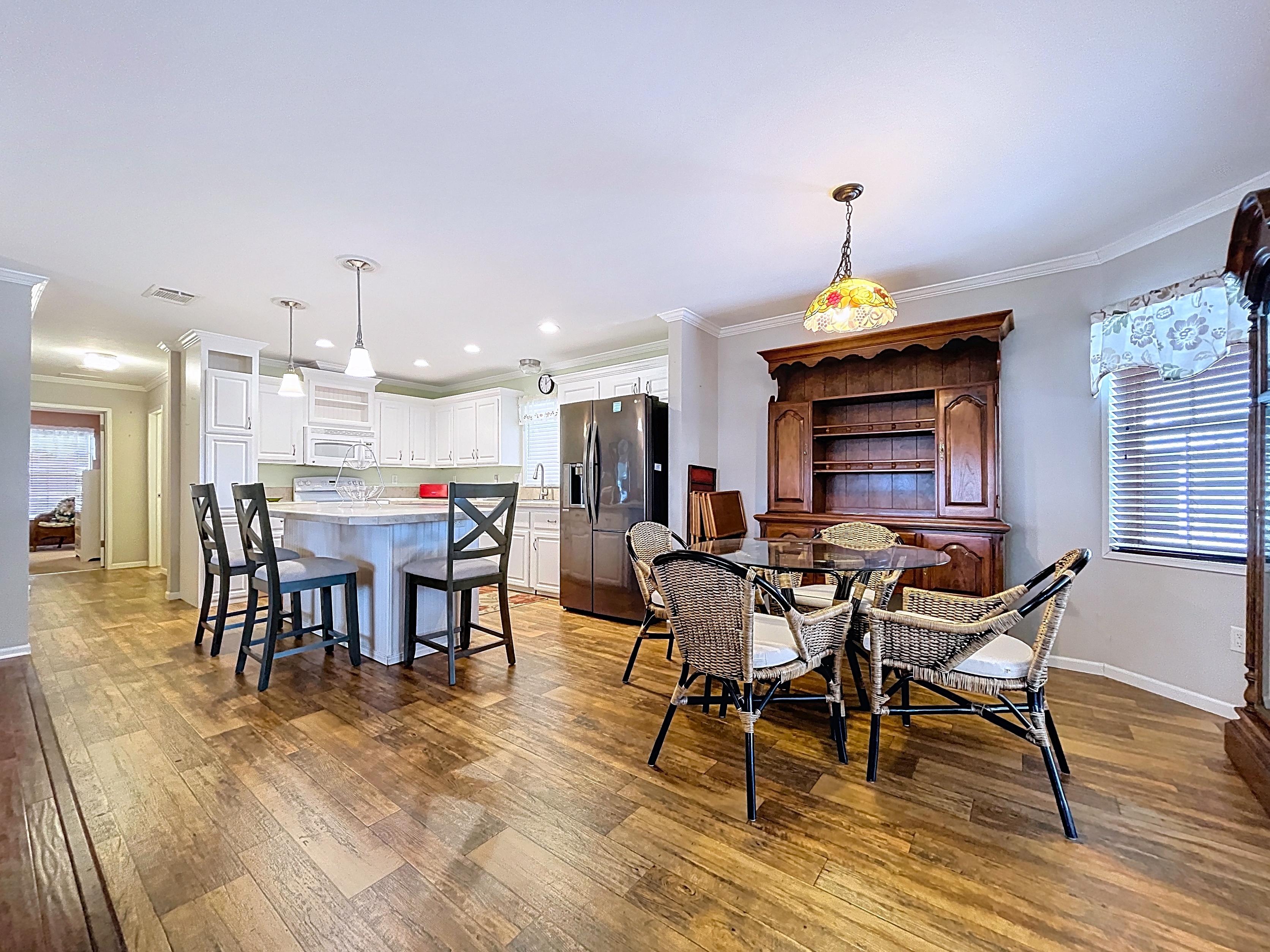 ✔ Kitchen with ample cabinetry, counter space, and adjacent dining area