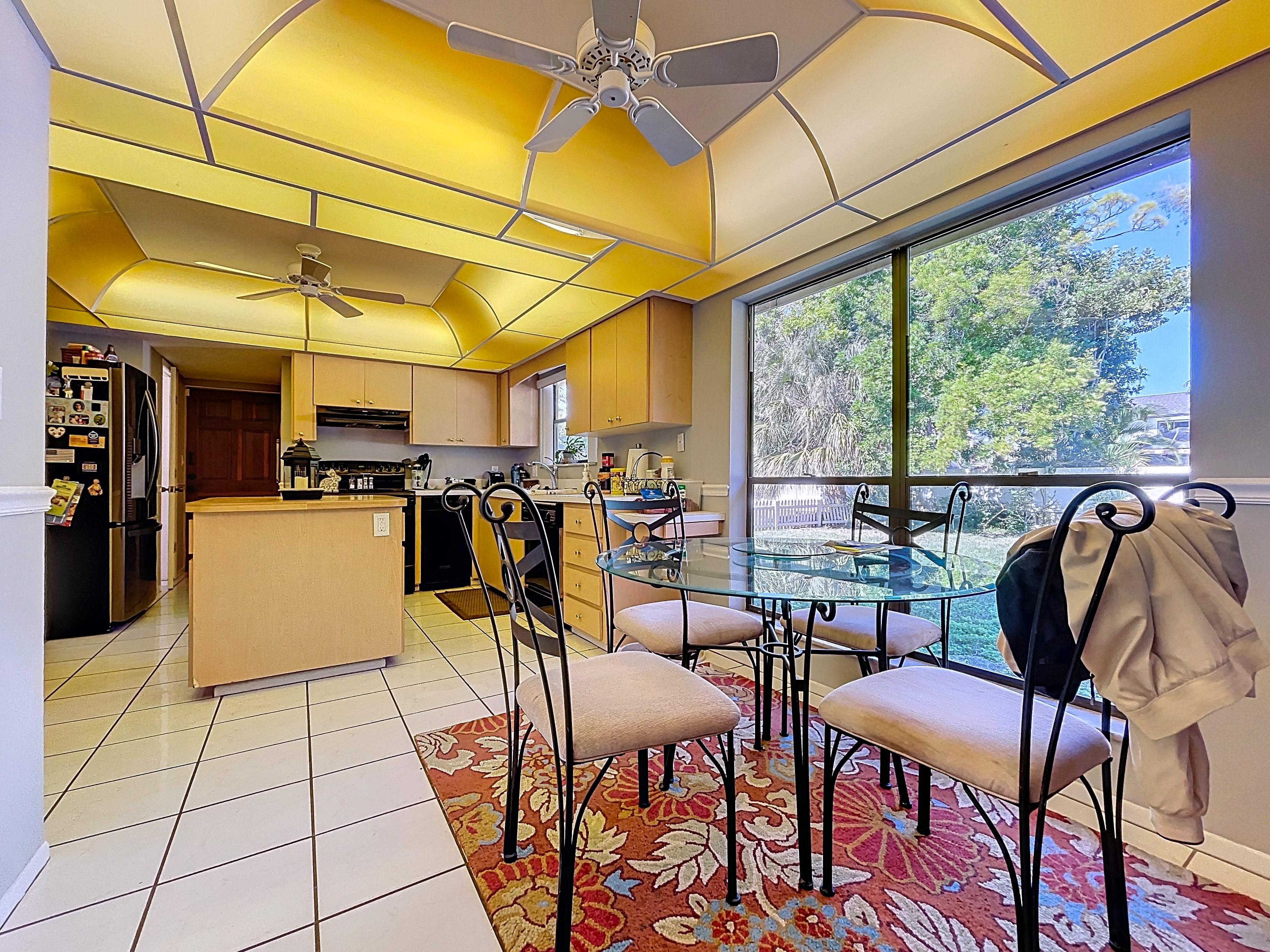 β Kitchen with generous cabinetry, counter space, and adjacent dining area (verify appliances/finishes)