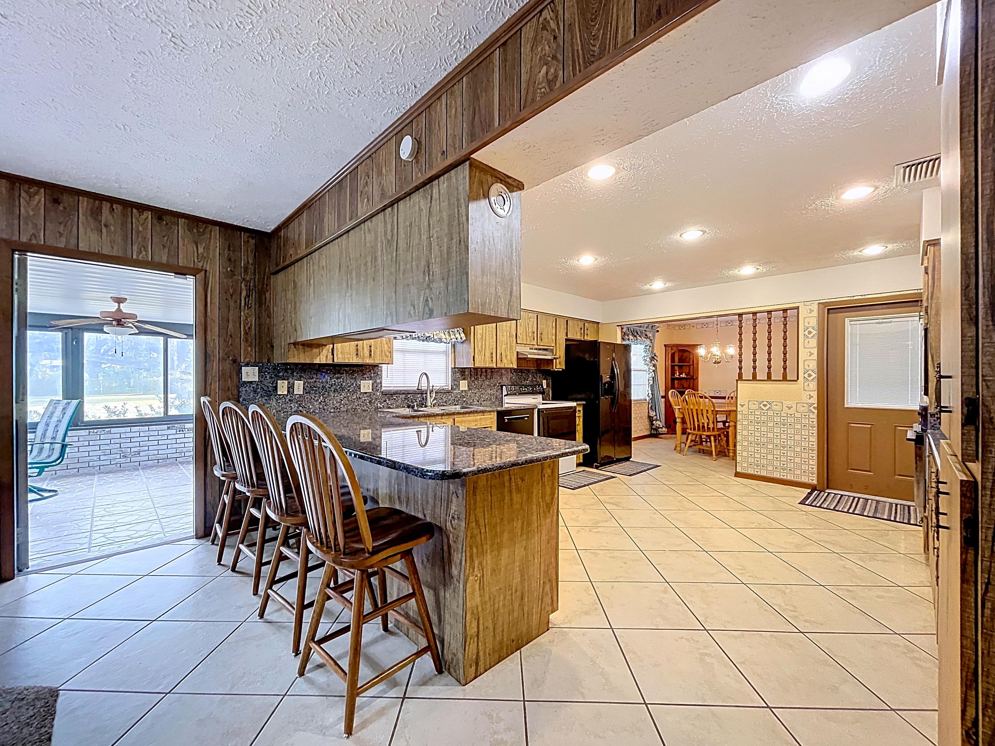 β Kitchen with ample cabinetry, breakfast bar, and adjacent dining area (verify finishes/appliances)