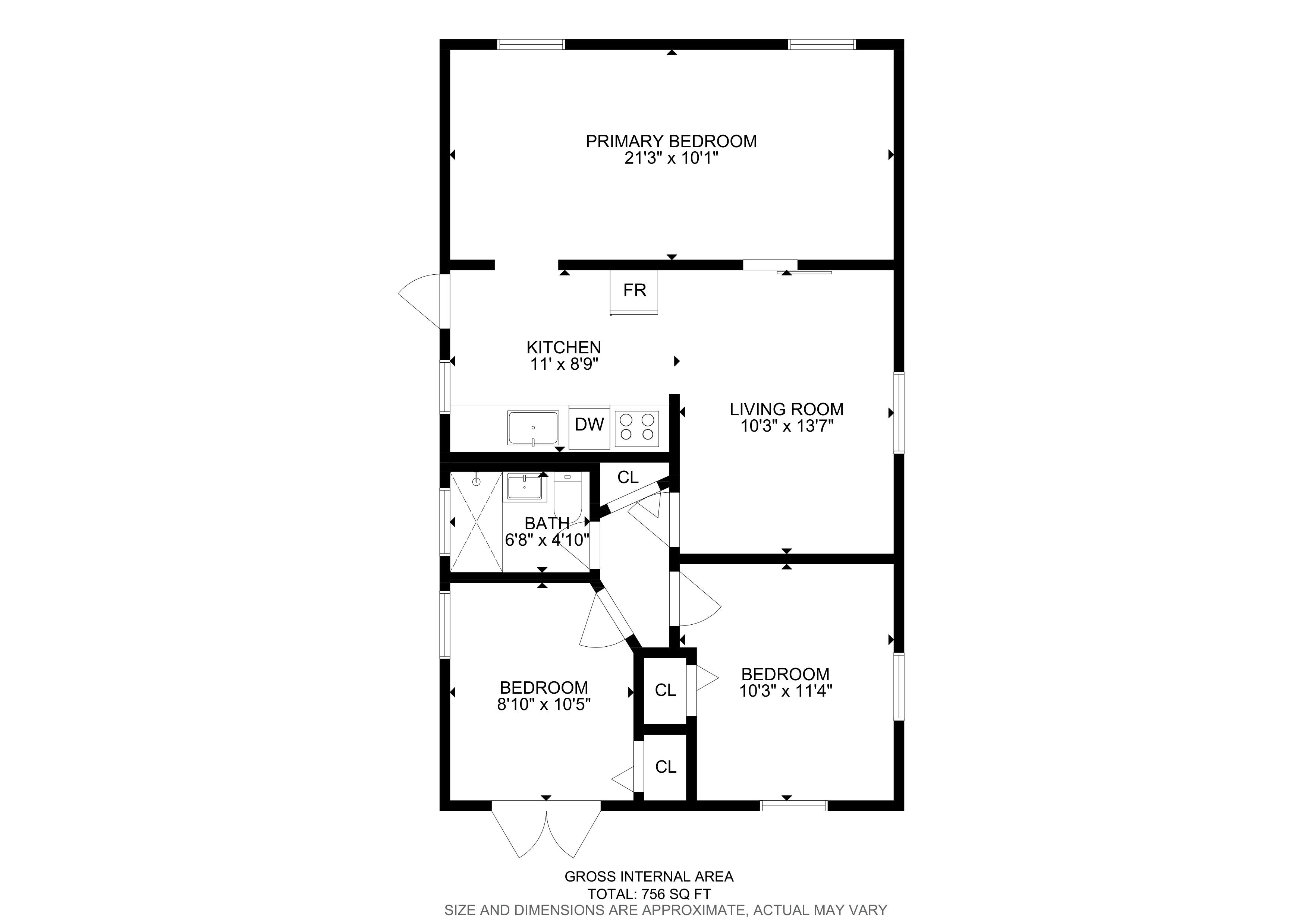 β 3 Bedrooms β’ 1 Bathroom β’ 756 sq ft (per Zillow β verify public record)