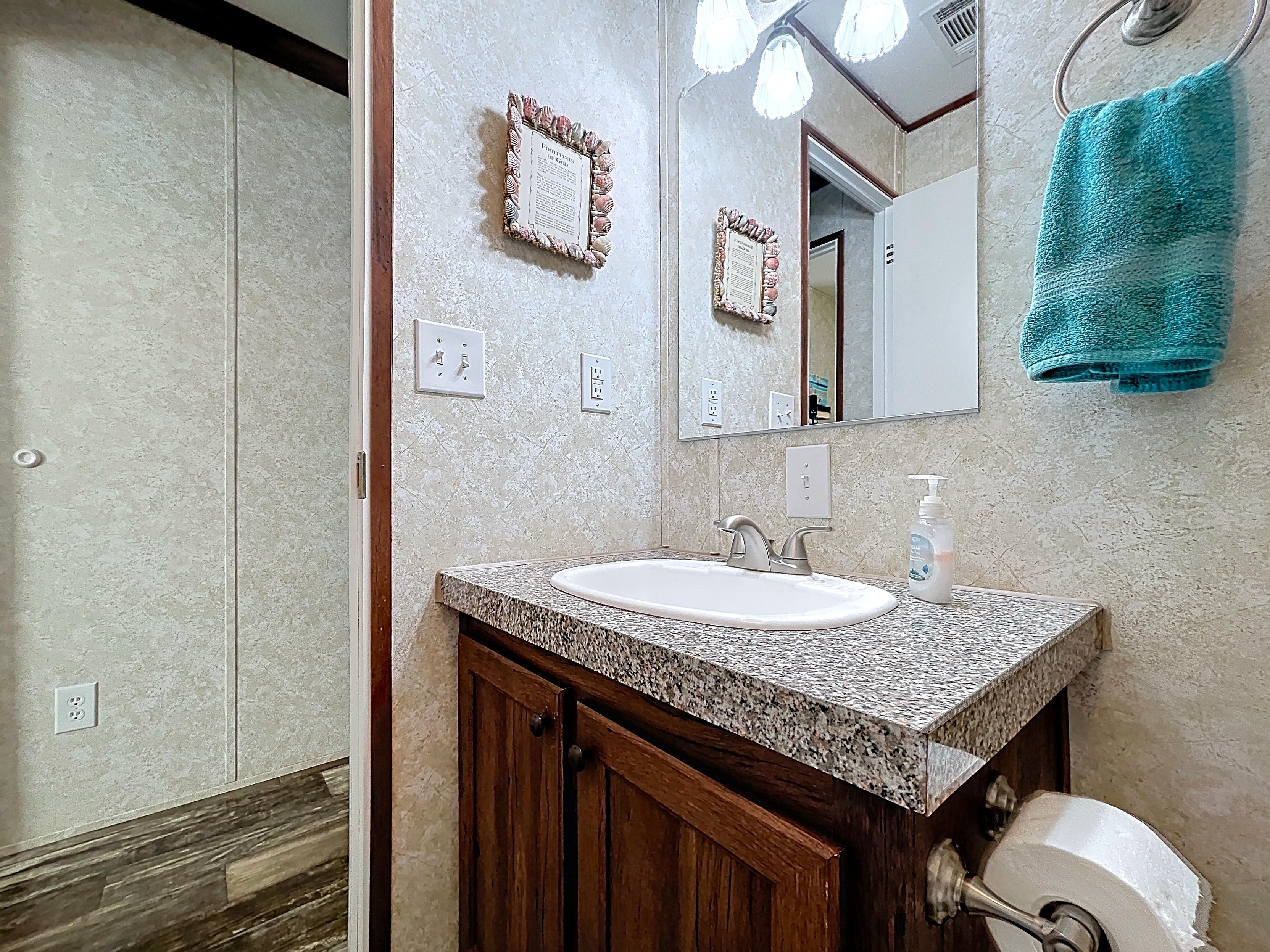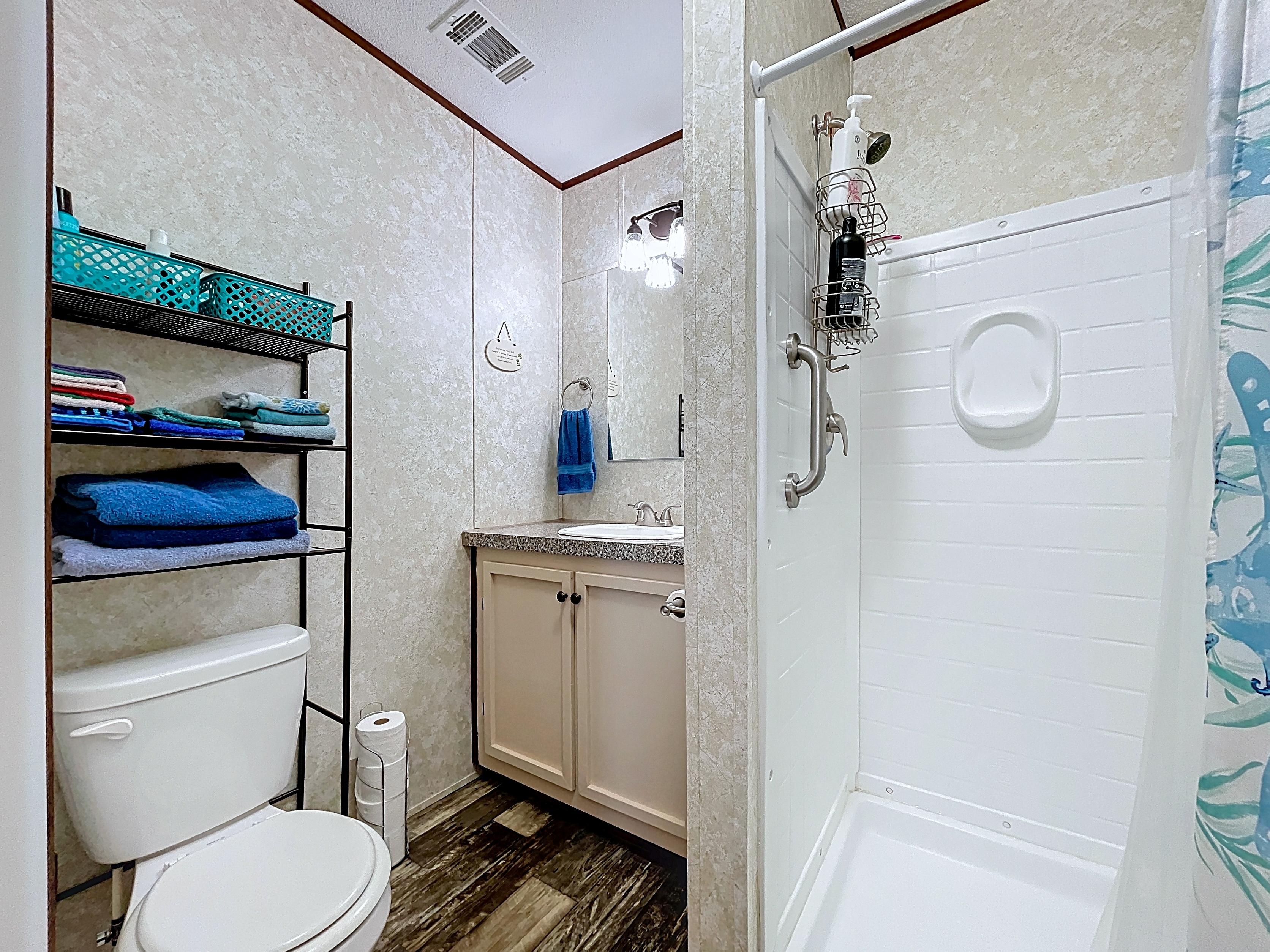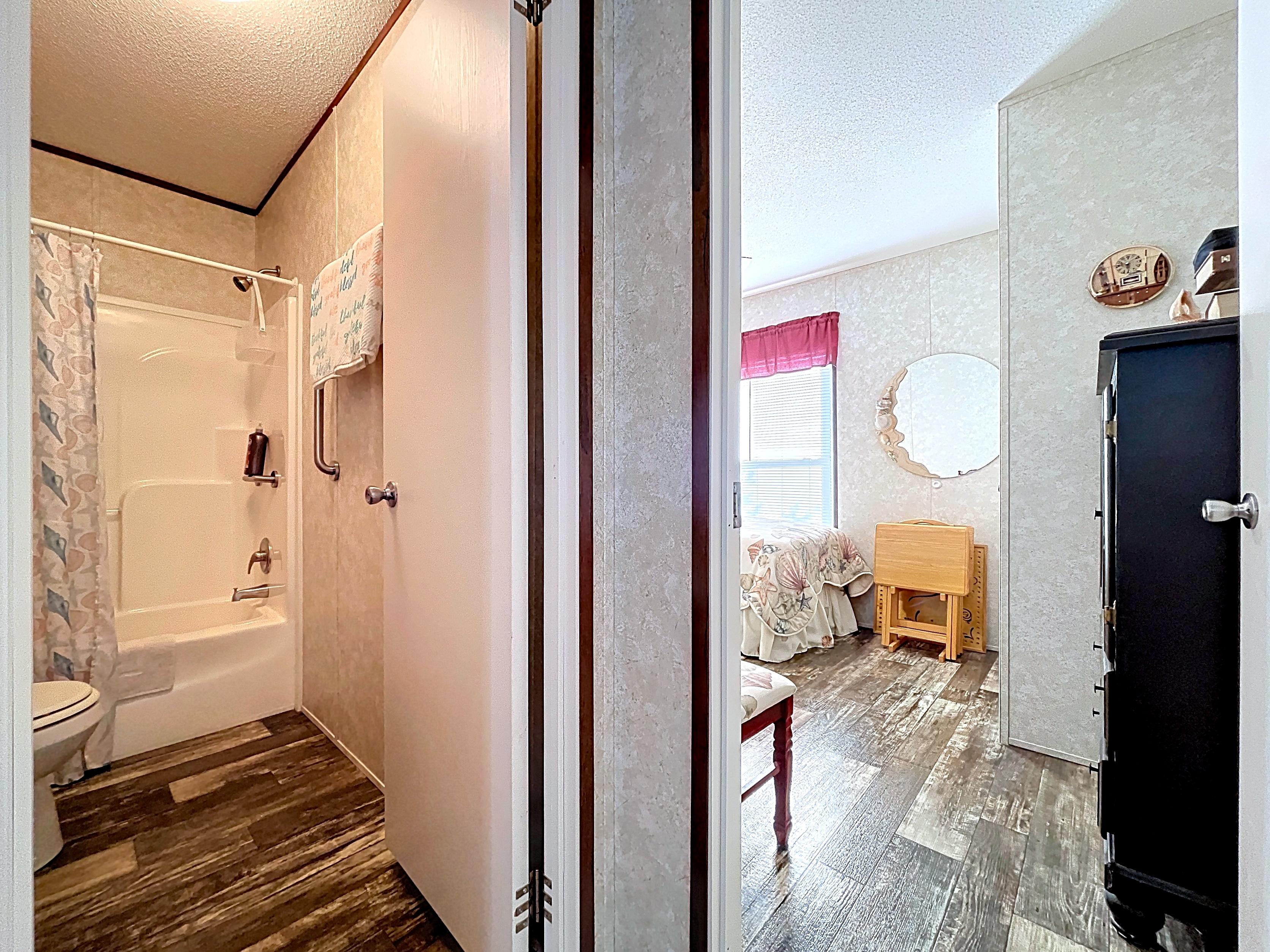β Guest bath with tub/shower combination