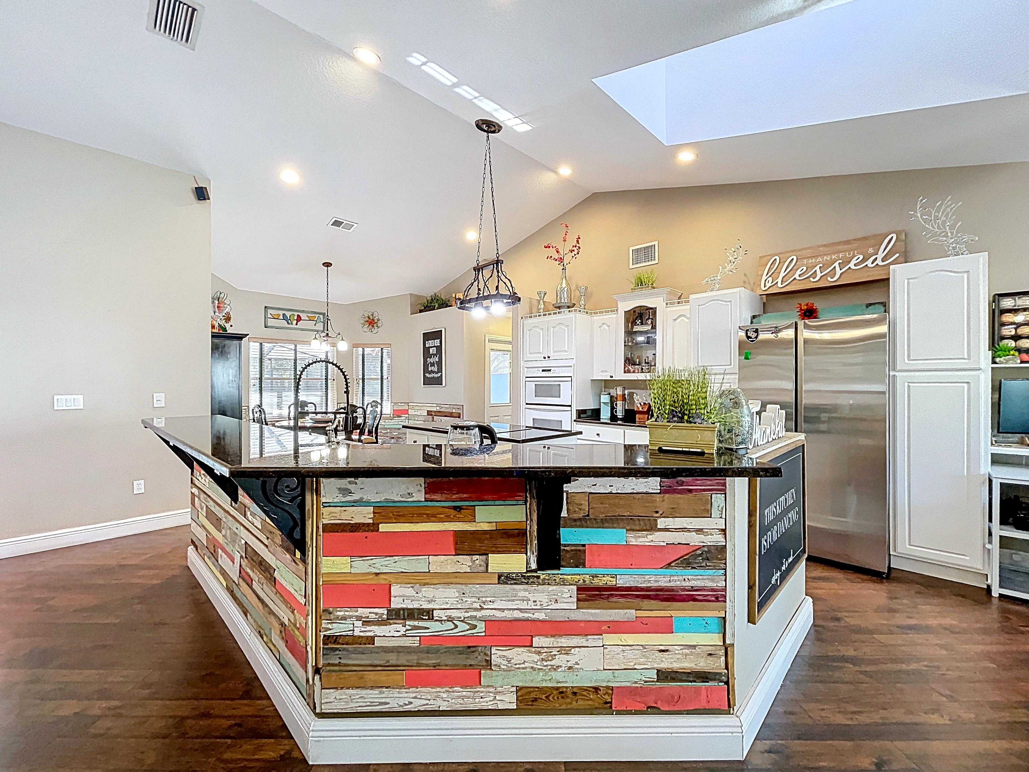 β Kitchen with island, granite counters, wall ovens, and generous cabinetry (verify finishes)