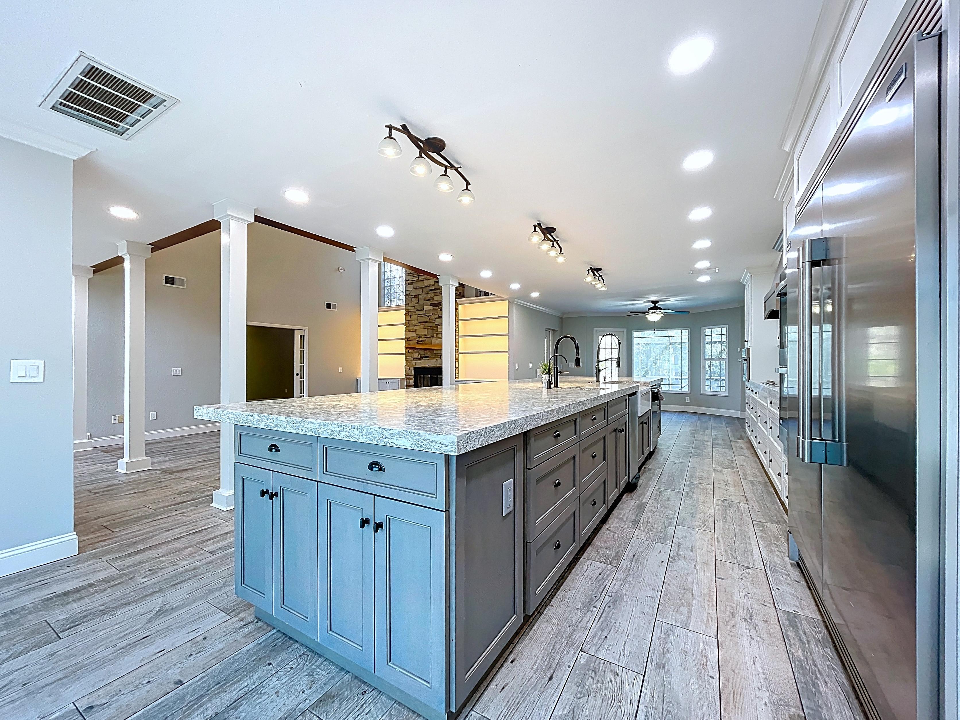β Large kitchen with ample cabinetry, pantry, and center island (verify finishes/appliances)