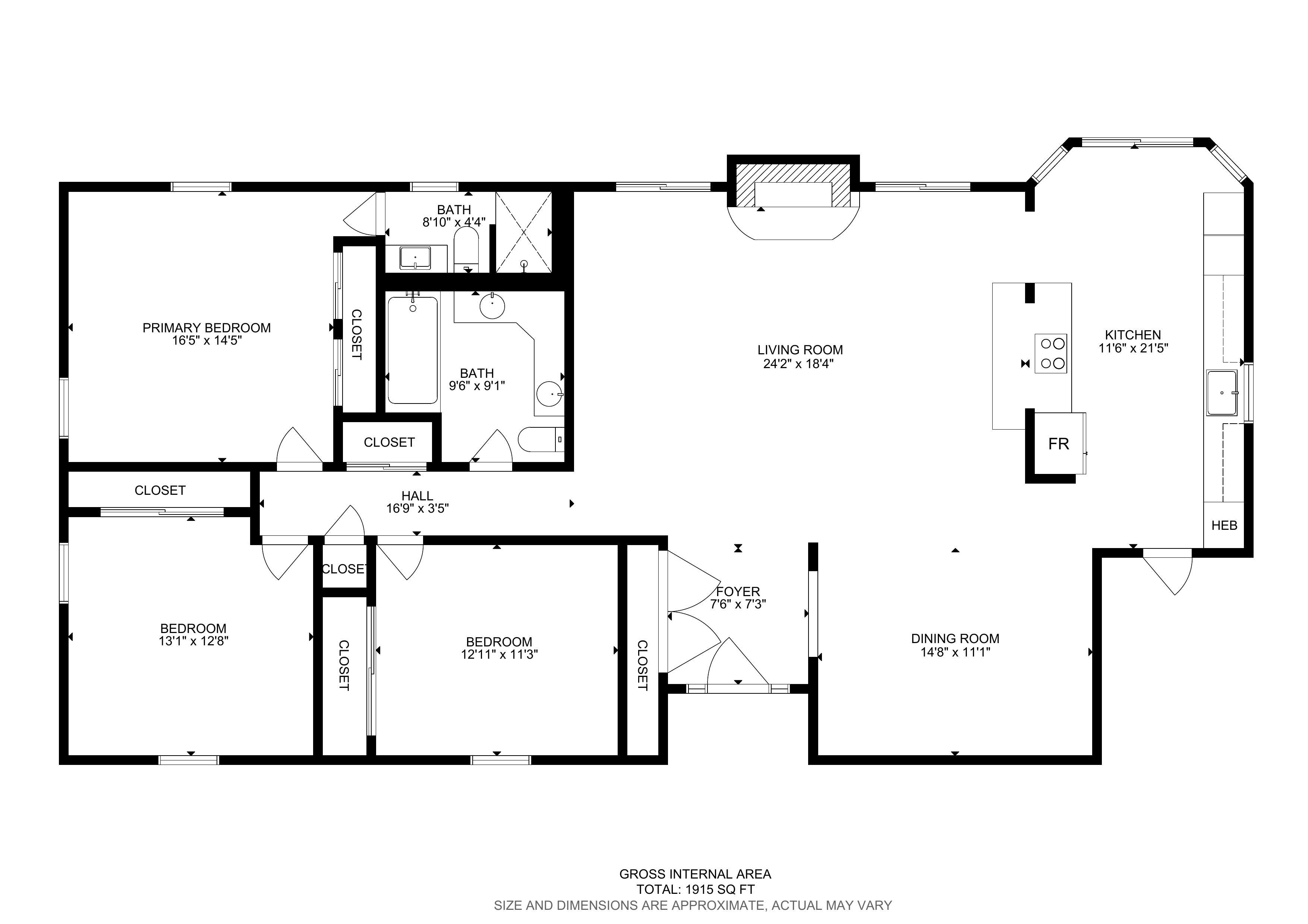 All dimensions, total internal size, and room count are approximate and/or subject to independent verification.