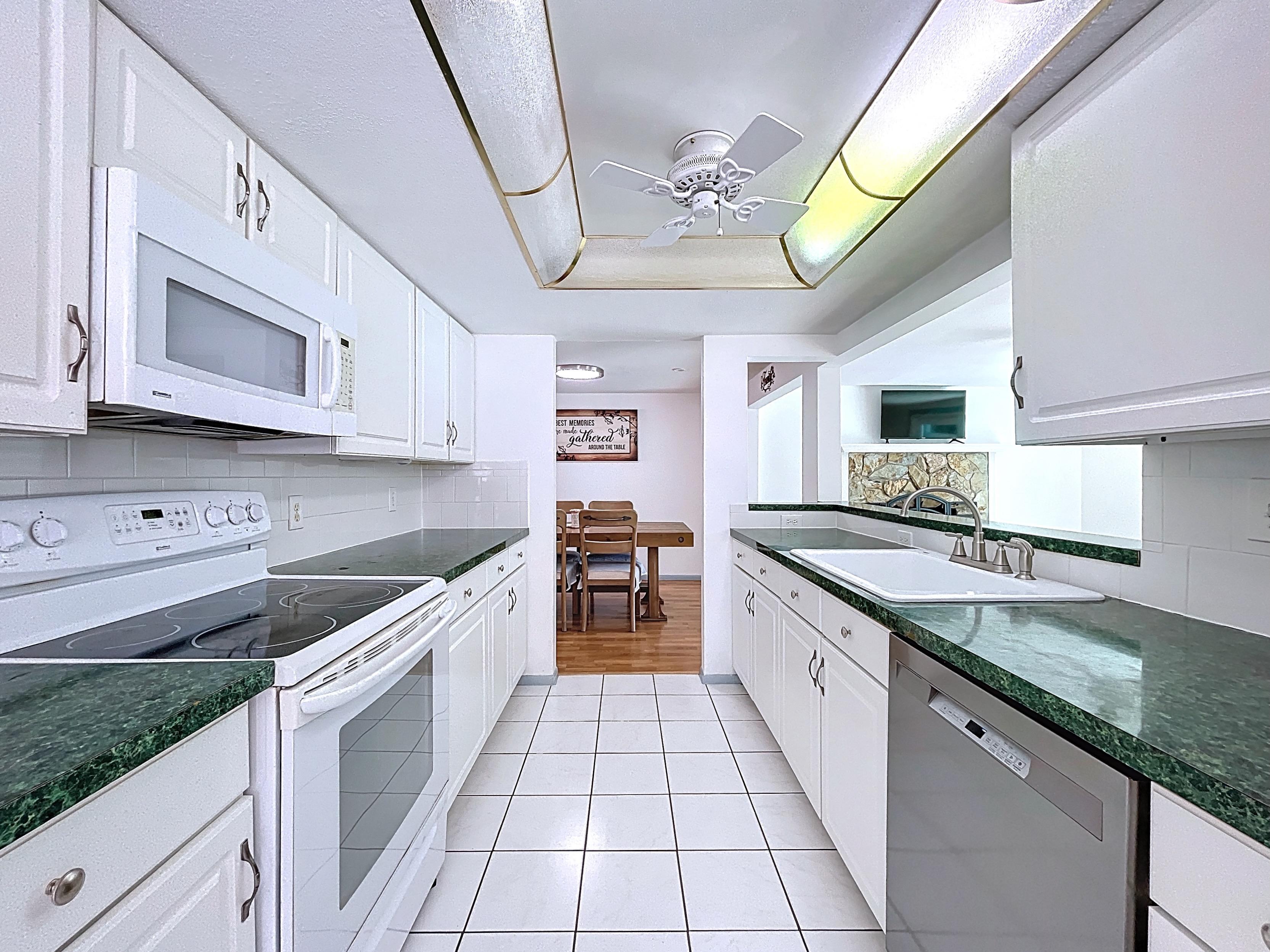 β Kitchen with wood cabinetry, laminate counters, pantry, and breakfast nook (verify finishes)