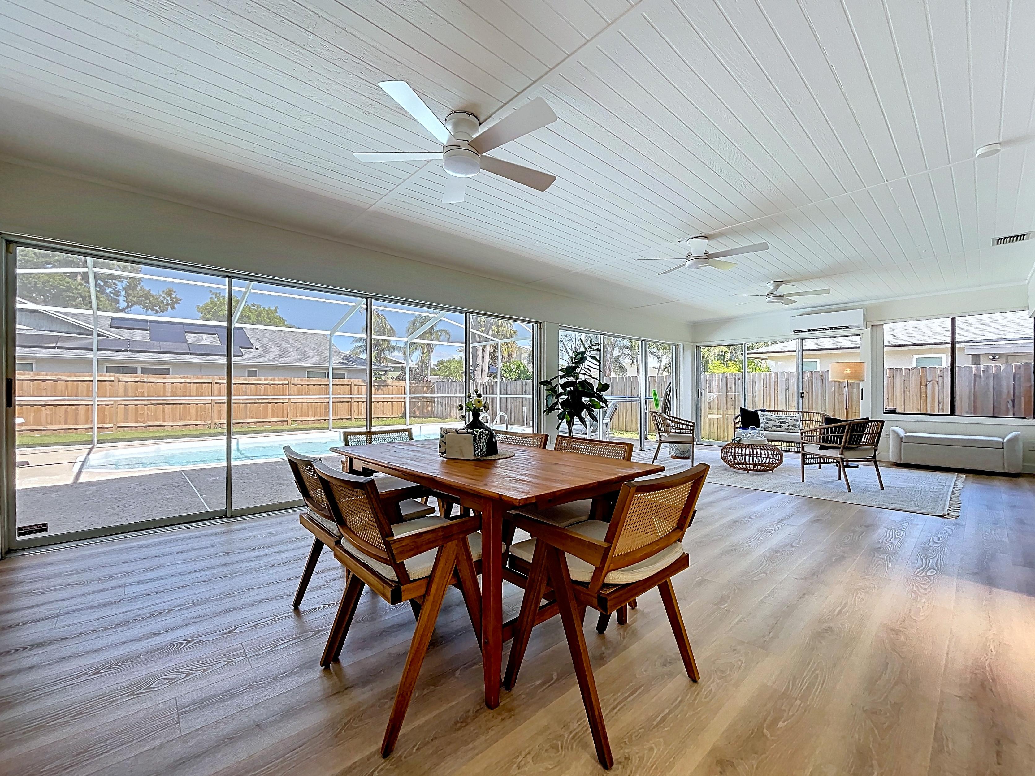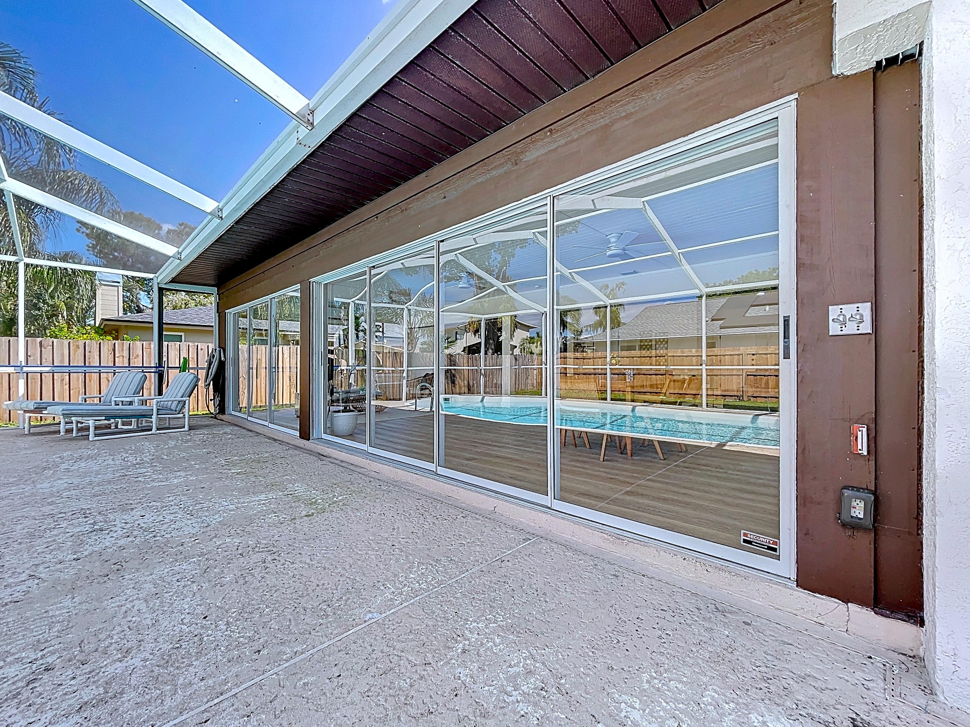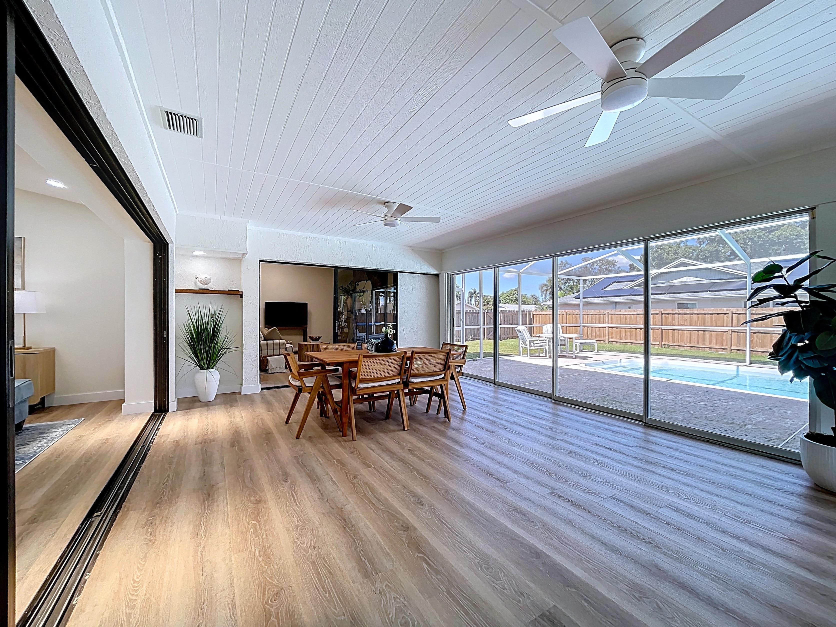 β Large family room or flex space opening to the screened lanai and pool area