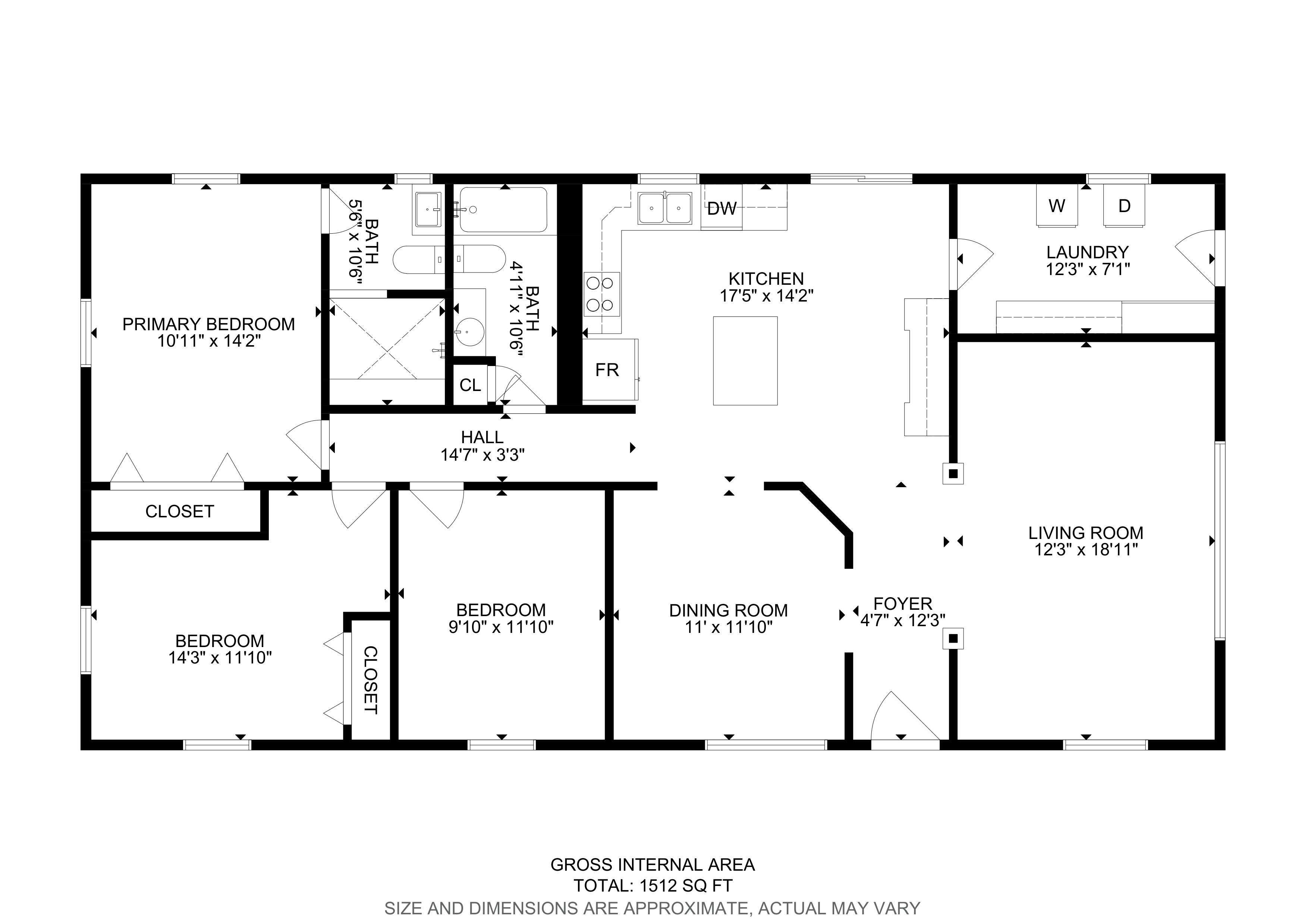 β 3 Bedrooms β’ 2 Bathrooms β’ ~1,512 sq ft