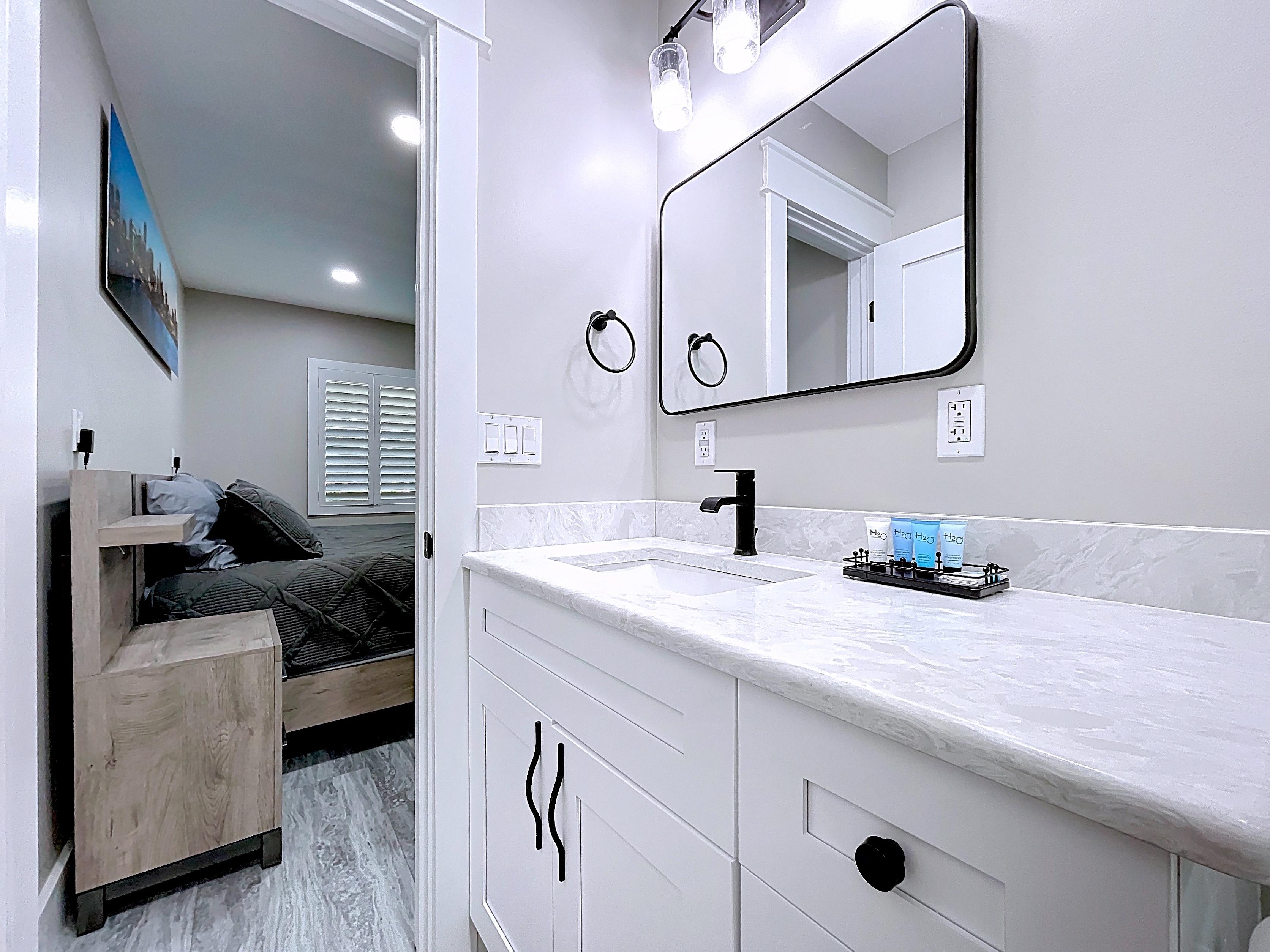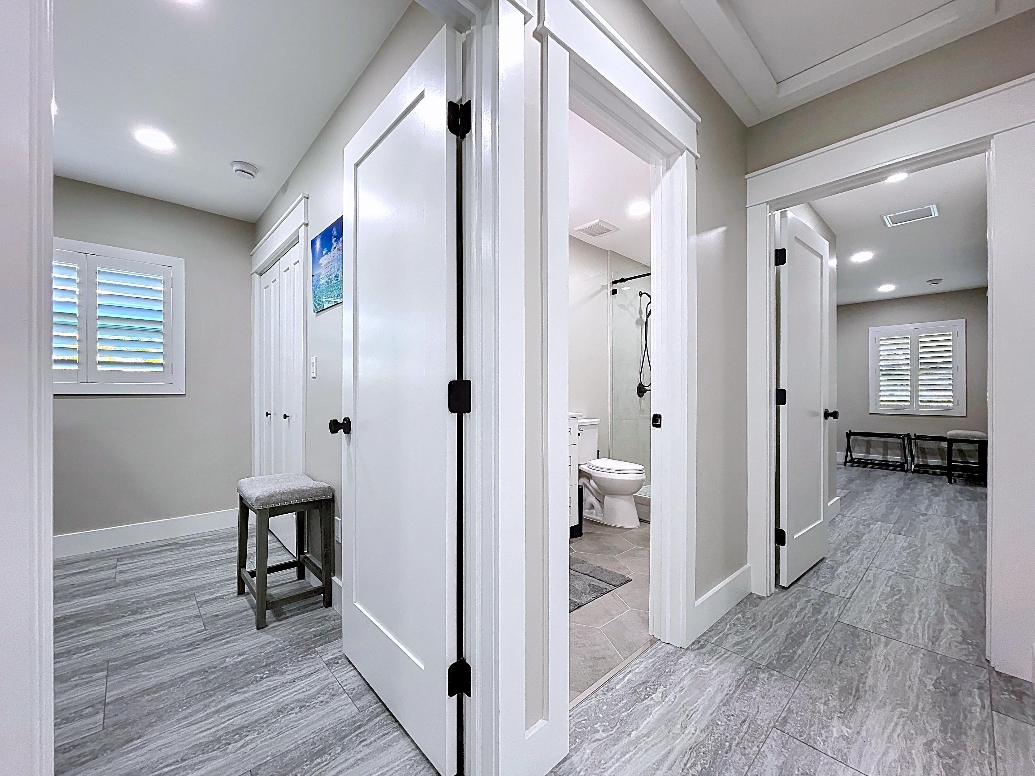 β Spacious primary suite with private en-suite bath and closet storage