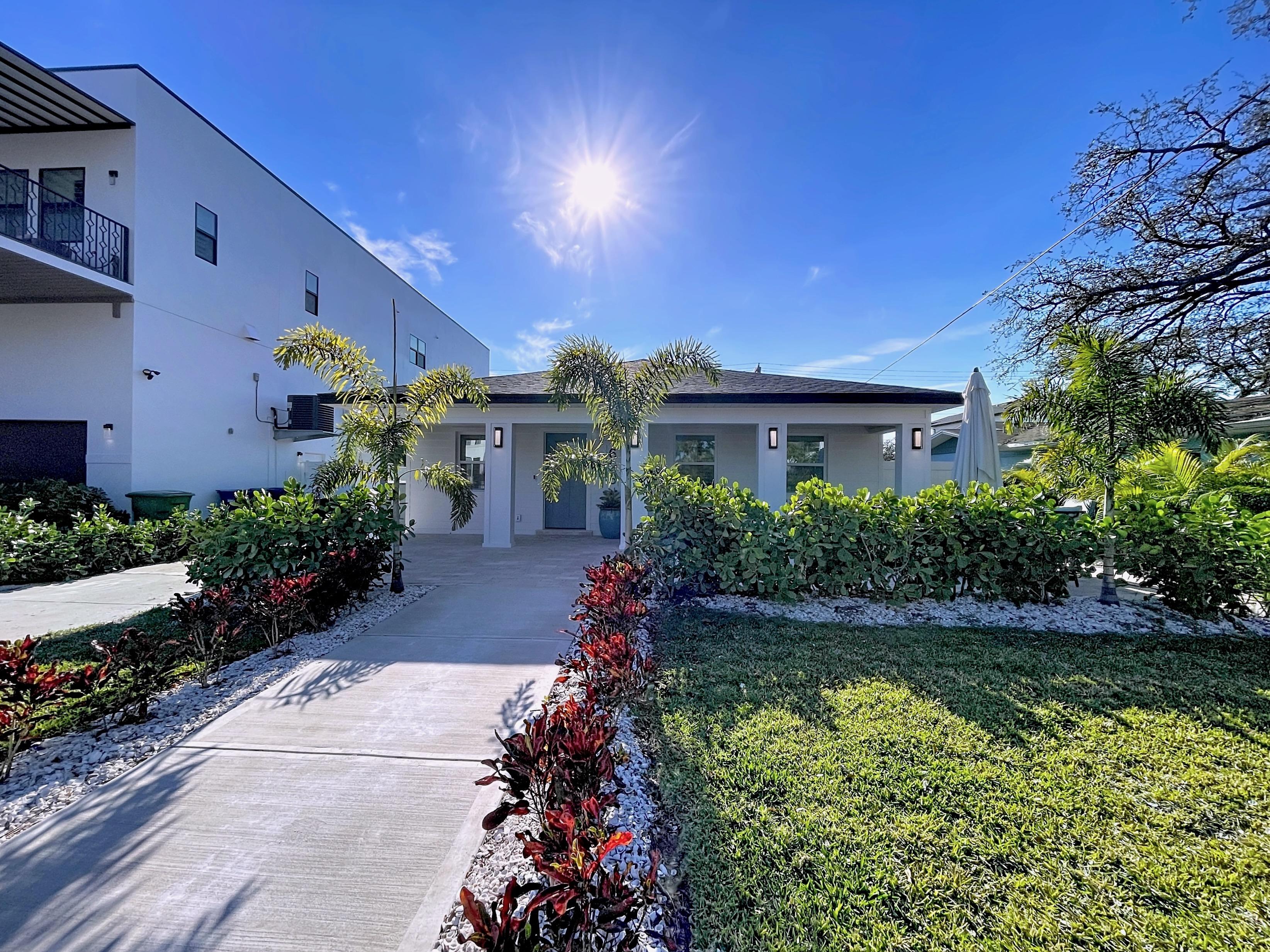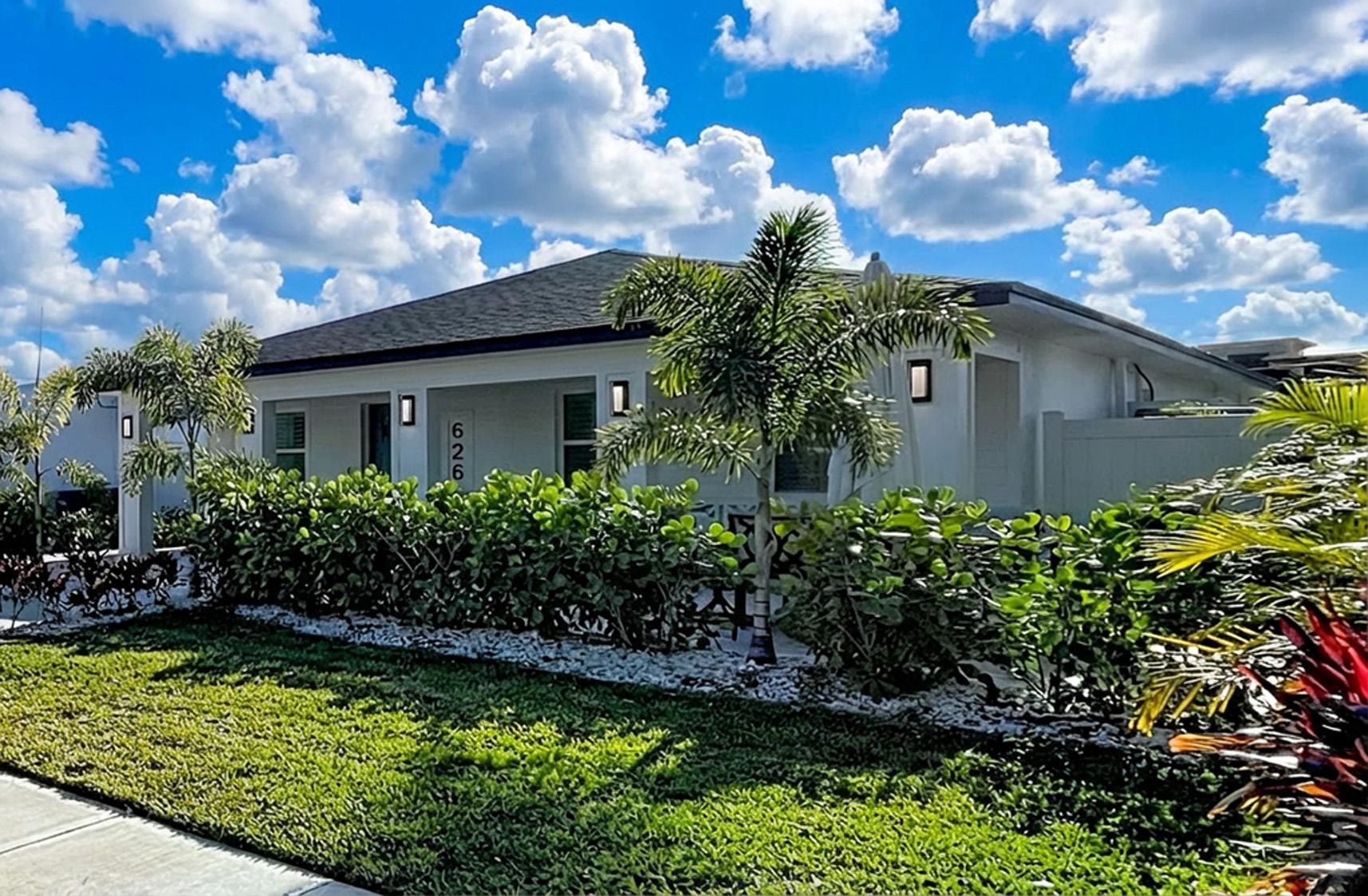 β Mature landscaping with stately palms and lush plantings