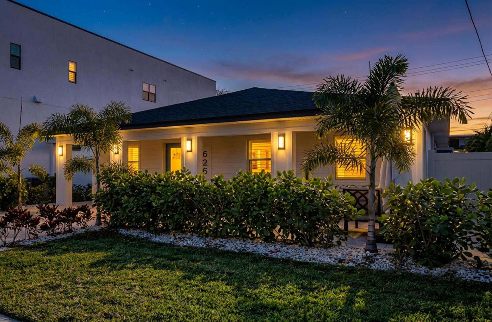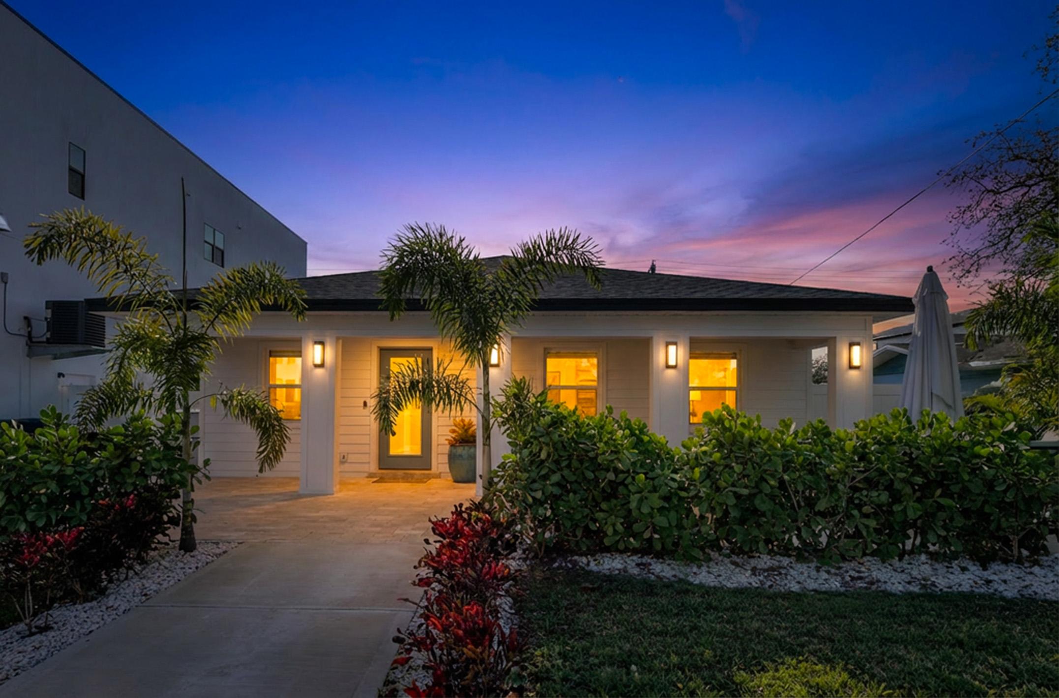 β Classic Tampa island architecture with block/stucco construction and high-end curb appeal