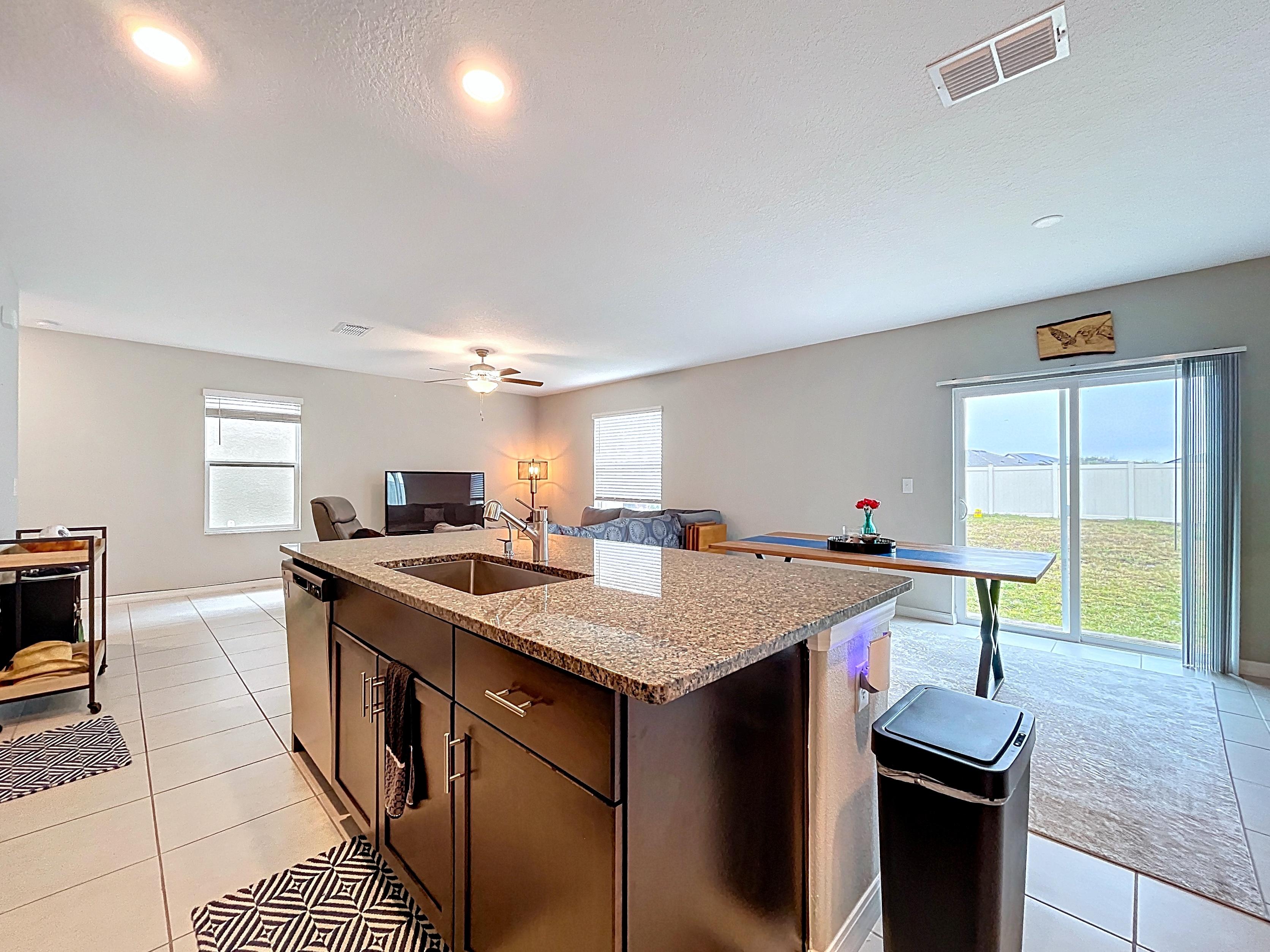 โ Covered lanai overlooking the backyard