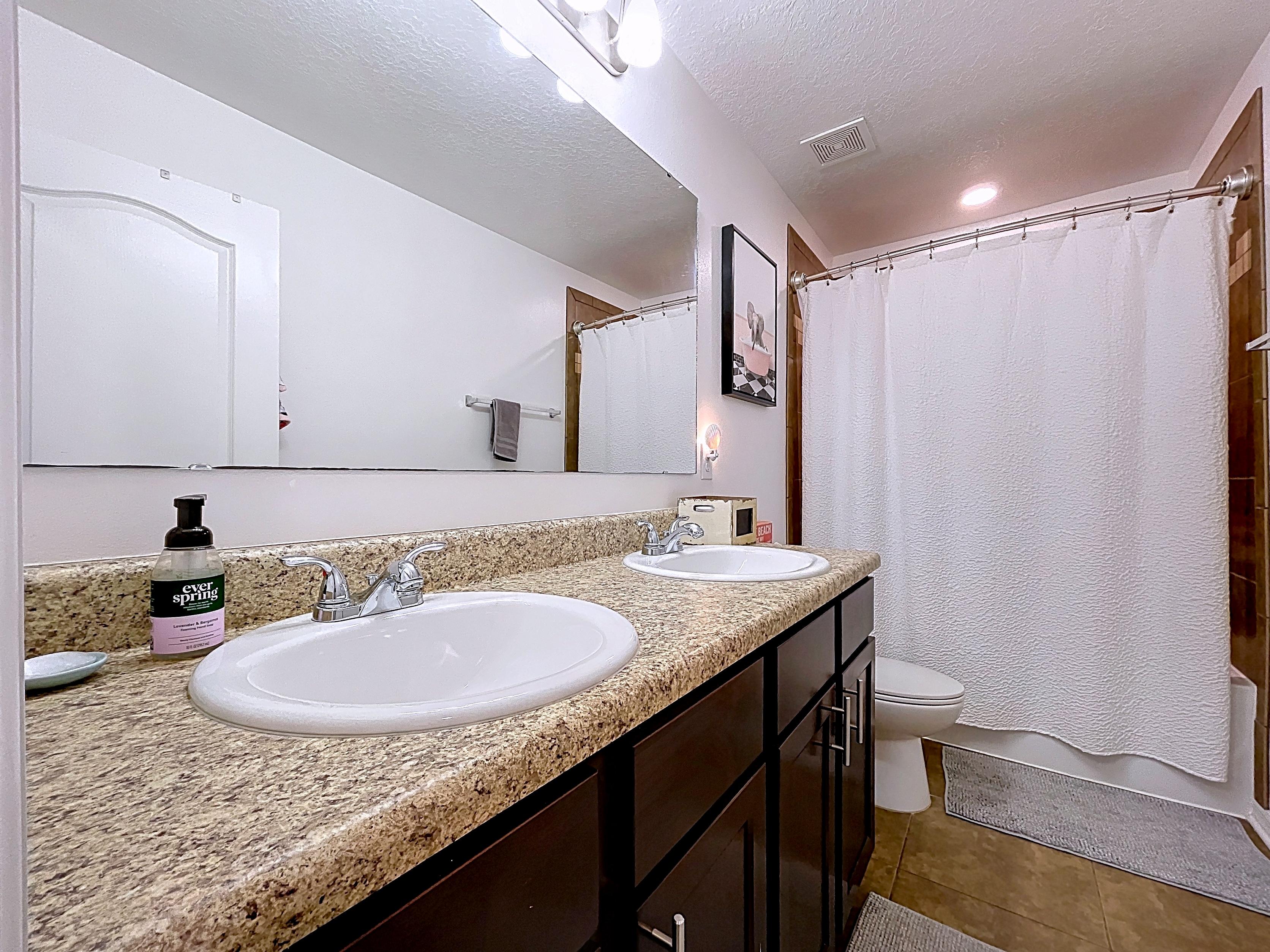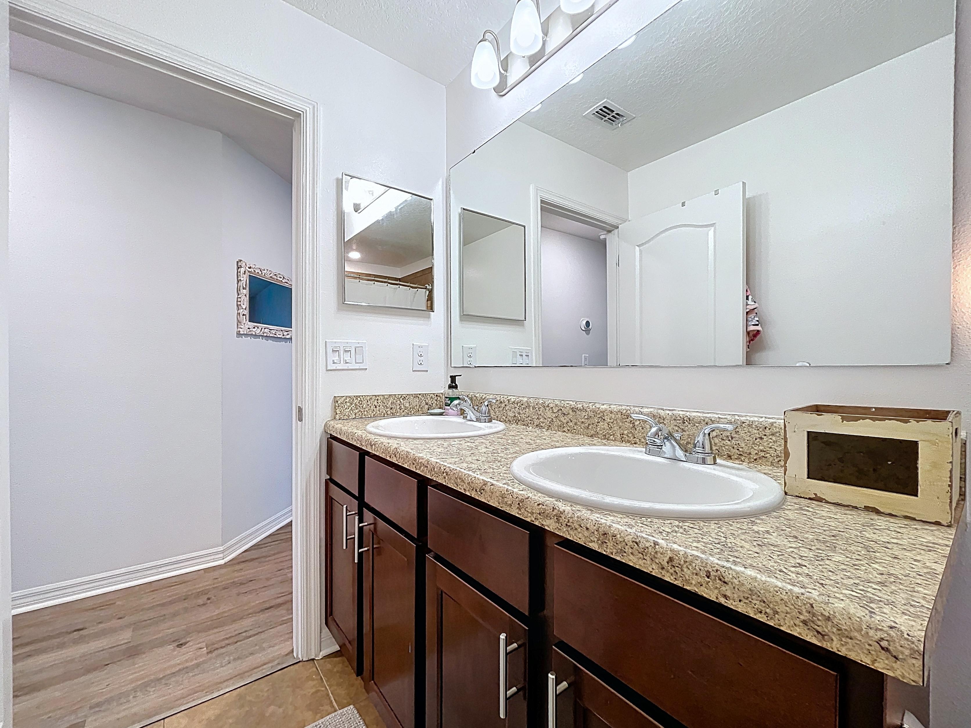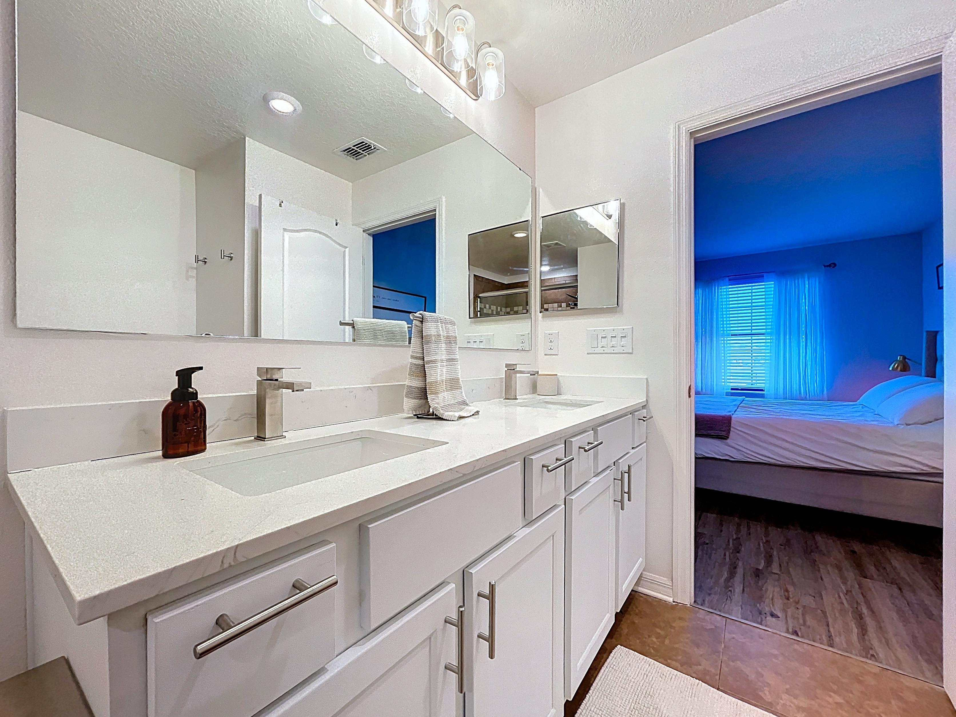 β Primary suite with walk-in closet and en-suite bath with dual vanities and glass-door shower