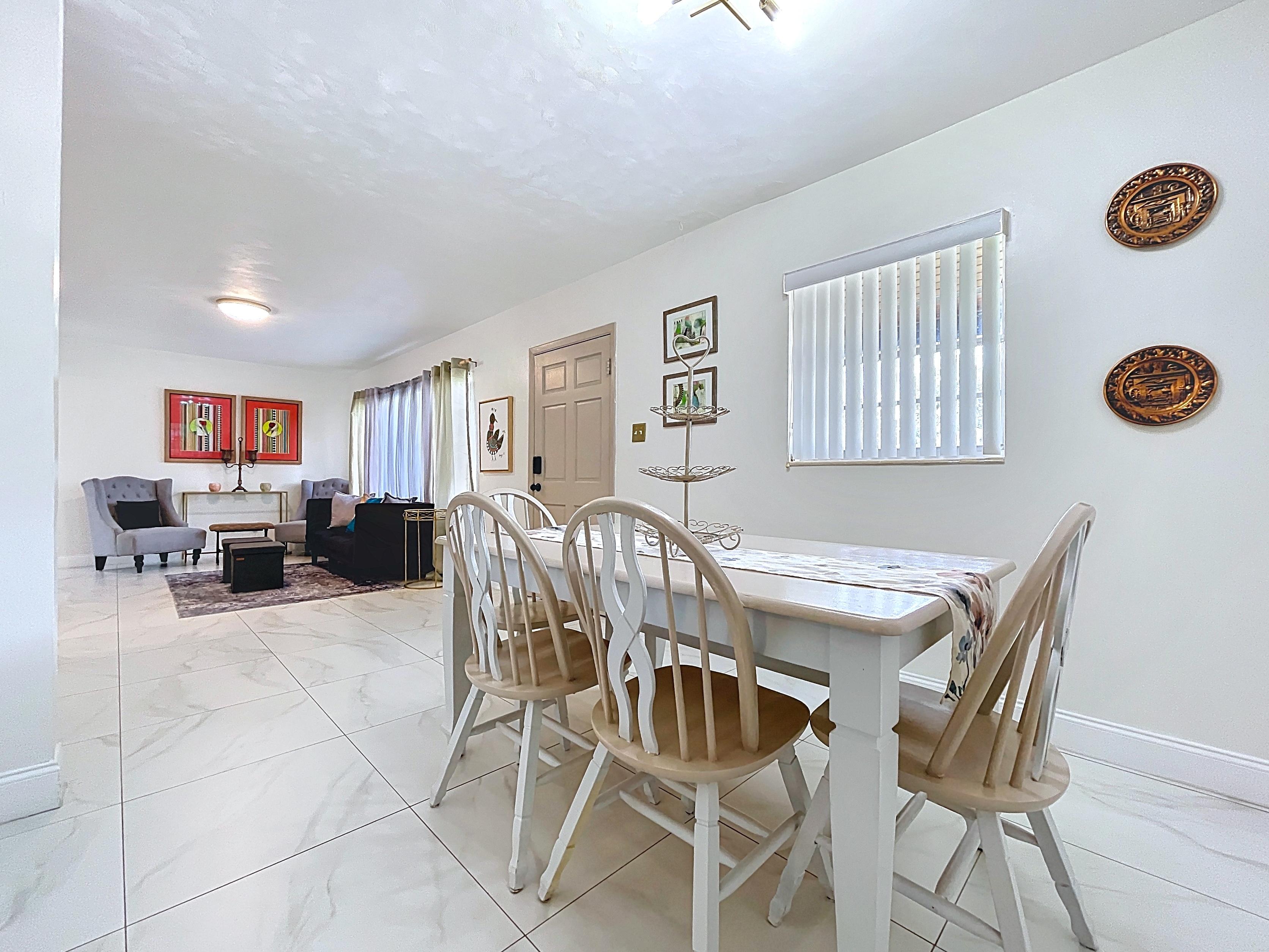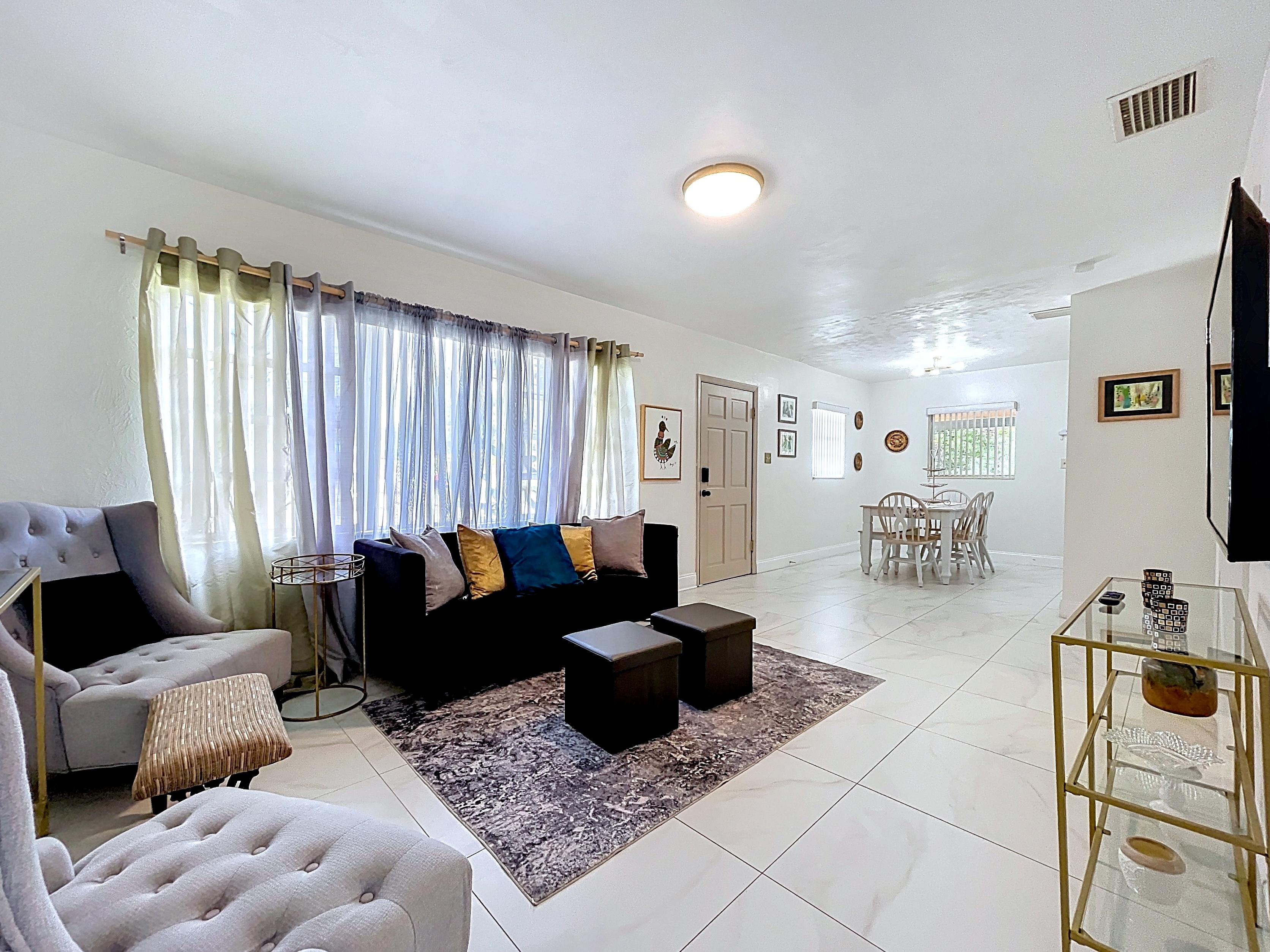 β Bright open-concept living and dining area filled with natural light