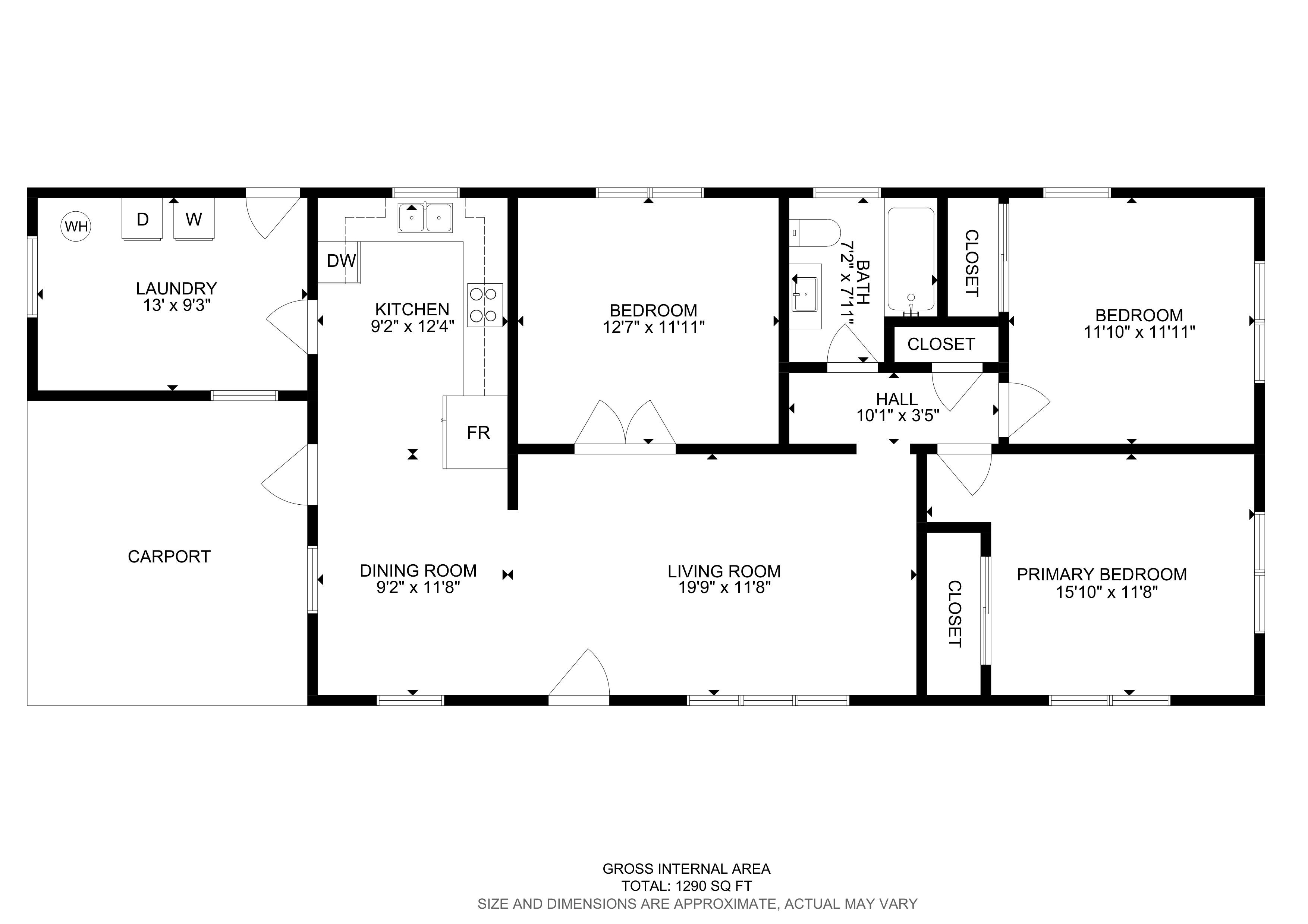 β 3 Bedrooms β’ 2 Bathrooms β’ ~1,200β1,400 sq ft (verify public record)